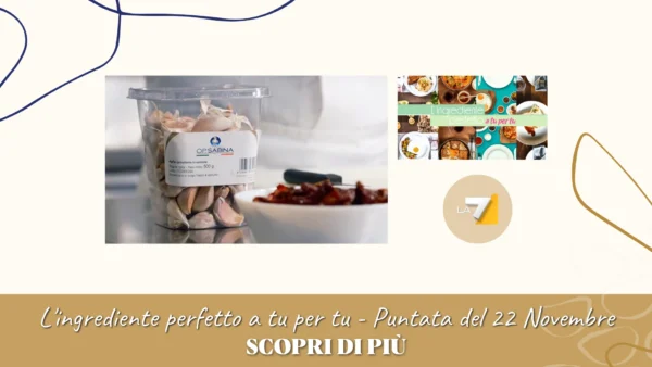 L’aglio di O.P. Sabina è stato utilizzato nella puntata del 22 novembre del programma culinario “L’Ingrediente Perfetto – A tu per tu”, in onda su La7 e condotto da Maria Grazia Cucinotta. Un’occasione importante per mostrare la qualità del nostro prodotto attraverso ricette d’autore firmate da due chef di grande talento. Le ricette degli chef…